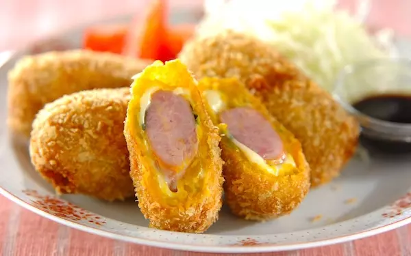 ソーセージの大きさに合わせてひと口サイズに仕上げると、まとまりやすく、揚げる時間も短縮できます。お弁当のおかずにもぴったりですね。