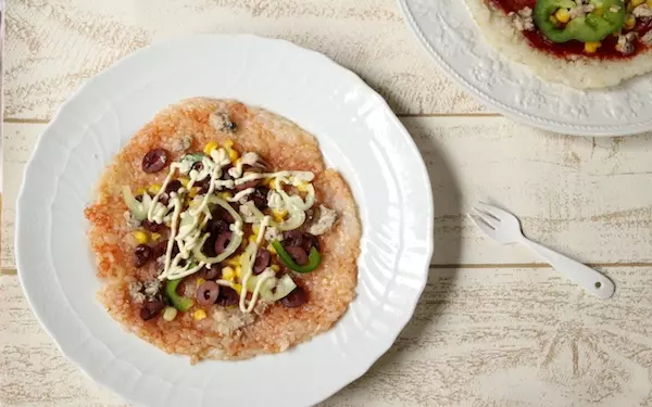え? これがごはん!? というくらい、クリスピーでモッチモチ! ピザそっくりな見た目に、お子さんも喜ぶことと思います。冷蔵庫にあるお野菜、いろいろなものを「ごはんピザ」にトッピングして楽しんでみてくださいね。