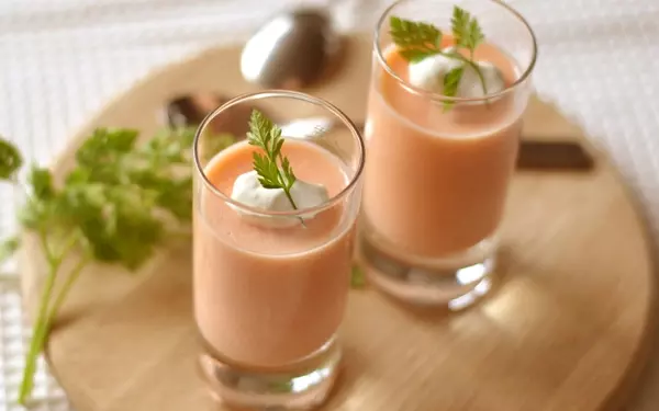 1、粉ゼラチンは湯で戻す。材料をすべてミキサーに入れ、なめらかになるまで攪拌する。
