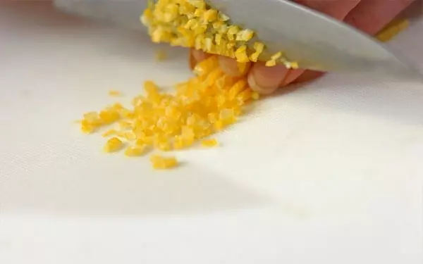 2、レモンの皮はよく洗い、白いワタを除き、みじん切りにして塩と合わせる。
