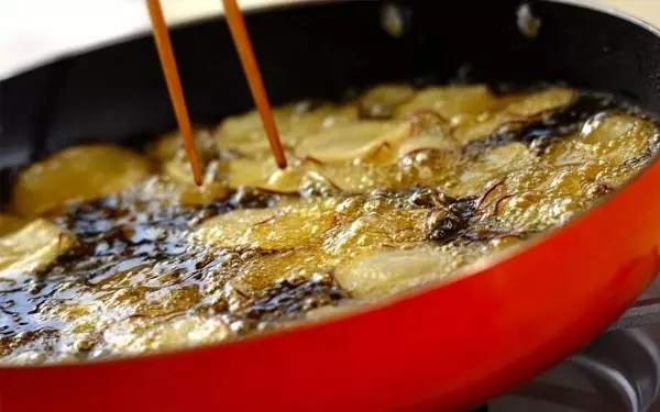 3、(1)を170℃の揚げ油でカリッとするまで3分程揚げ、粗熱が取れたら皿に盛り、(2)を添える。