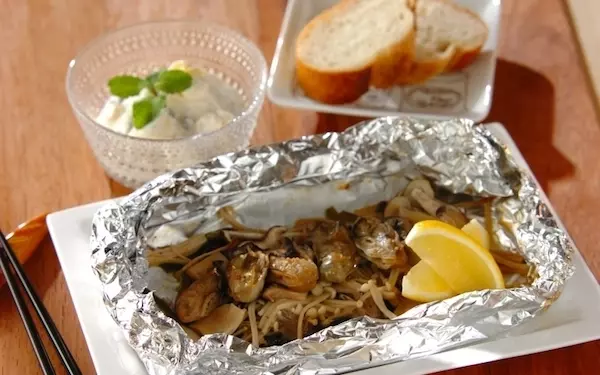 ■ヘルシーで美味しい! カキとキノコのホイル焼きの献立