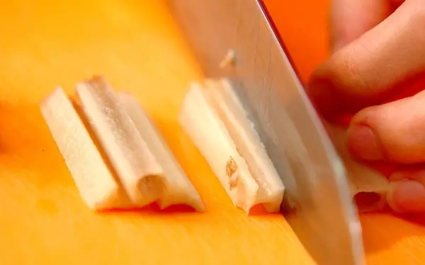 1、レンコンは皮をむき、縦に幅1cmの棒状に切り、酢水に放ってザルに上げる。ゴボウはタワシできれいに水洗いし、斜め薄切りにして水に放ち、ザルに上げる。ニンジンは皮をむき、短冊切りにする。