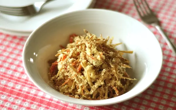 市販品でももちろんよいのですが、作りやすいのは定番で常備菜にもなるきんぴらごぼうだと思うので、料理としてはきんぴらがおすすめ。