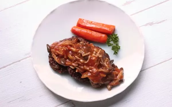 「きのこのハヤシライス」があれば、どんなものでも本格的な洋食になります。<ハンバーグに添えて>