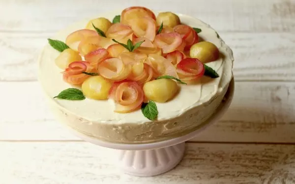 「簡単チョコケーキ」にフルーツとミントをあしらうだけで、デコレーションケーキが楽しめます。もちろん、クリームとフルーツでデコレーションすれば、バースデーケーキや、クリスマス用のケーキにもおあつらえ向きです。