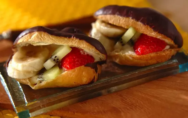 たった5分でできるこちらのレシピは、簡単にできるのに、家族みんなに喜ばれる優秀デザートです。イチゴ、バナナ、キウイを食べやすい大きさにカットし、市販のエクレアに切り込みを入れ、カットしたフルーツをサンドすれば完成!