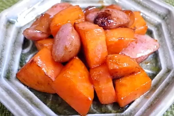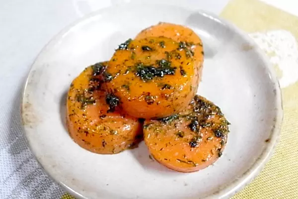 にんじんをバター炒めにして、青のりをからめてしょうゆで味つけします。
