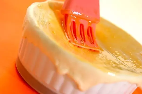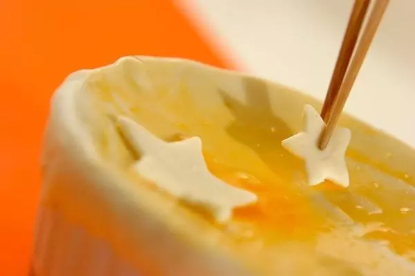 3、0.5枚分のパイシートは、星型で型抜きする。ココットのフチに溶き卵をぬり、パイシートをかぶせて溶き卵をぬる。