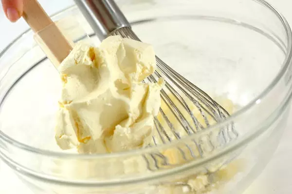 1、ボウルに無塩バターを入れて泡立て器でクリーム状にし、グラニュー糖を加えてよく混ぜ合わせる。柔らかくしたクリームチーズ、溶き卵、牛乳を加えてさらに混ぜ合わせる。