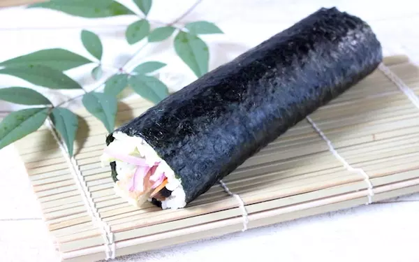 子どもの苦手な野菜も、恵方巻にしてしまえば知らず知らずのうちにおいしく食べられて、一石二鳥です。今回は、厚揚げのみそ漬けのほかにアボカド、人参のマリネ、赤タマネギの梅酢和え、かんぴょうと干ししいたけのうま煮を使いました。恵方巻の具はどんなものでも大丈夫ですが、赤・黄・緑など、彩りを考えて入れると見た目も楽しめますよ。巻きすがなければ、キッチンペーパーの上にラップを敷いて巻けば巻きすの代用になります。