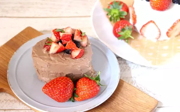 ココアを抜かせば、離乳食にも安心できるような材料で、かわいいスイーツが作れます。●「イチゴショートケーキ」