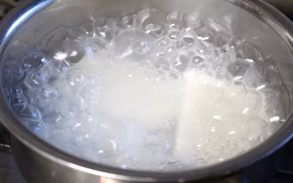 1、小鍋に200ccほどの湯を沸かし、餅を入れてゆでる。