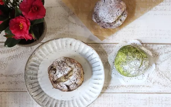 「無発酵の豆腐パン」の生地に色を加えるとカラフルなまるパンのできあがり! 今回は、抹茶、ココア、紫芋パウダーを加えてみました。「無発酵の豆腐パン」1個分につき小さじ1程度で十分に色づきます。