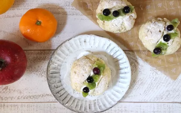 「無発酵の豆腐パン」に切れ目を入れてクリームやフルーツをはさめば、見た目も豪華なフルーツサンドのできあがり! シュークリームのような食感で、幸せなおやつタイムを過ごせます。