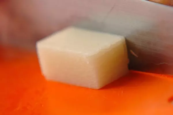 1、お餅はひとくち大に切る。シメジは石づきを切り落とし、ほぐしておく。
