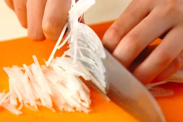 ・大根は皮をむき、せん切りにして冷水に放ち、ザルに上げてしっかり水気をきる。