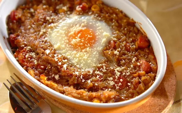 ■チーズと半熟卵がたまらない美味しさ、トロトロ卵の焼きカレーライス