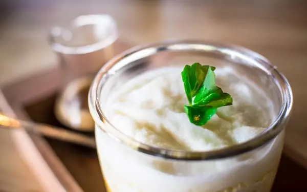 1. 耐熱グラスにヨーグルトを入れ、水とはちみつを加えてよく混ぜる。
