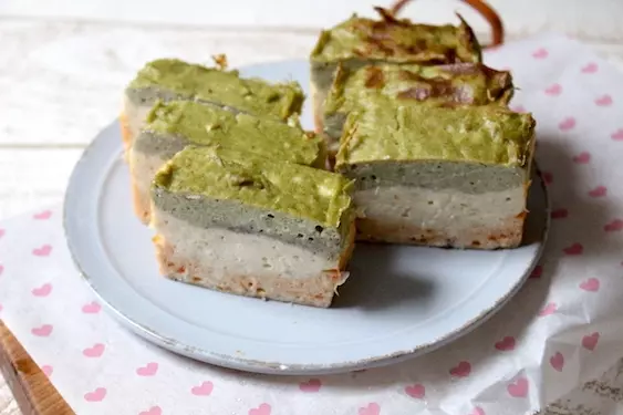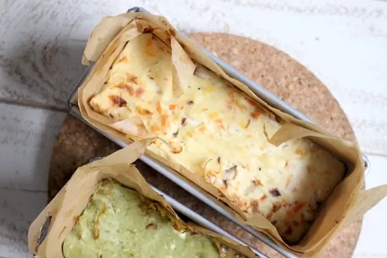 パウンド型に3層に重ねてから焼けば、3色ローフのできあがり!パーティーの一品にもオススメです。赤や緑、1色にして、色違いの豆腐ローフを3本作るのもアリです。人参やしいたけなどの具を入れなくても、おいしく食べられますよ。