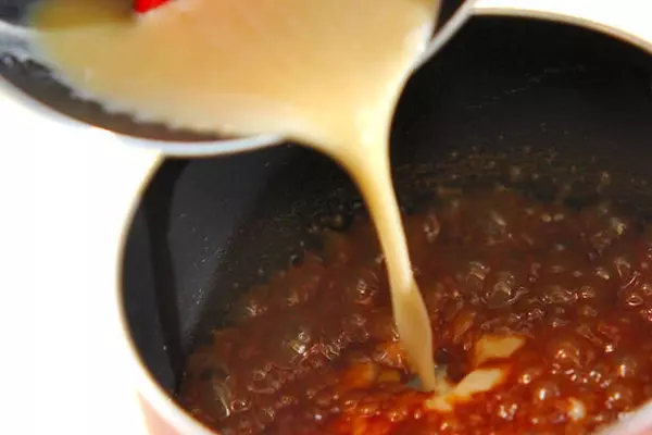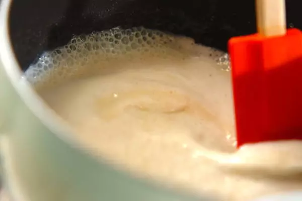 1、鍋に牛乳、生クリーム、ハチミツ、バターを入れて沸騰させる。