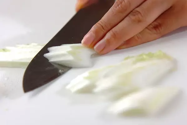 1、<肉団子>の材料をボウルに入れてしっかりこねる。白菜は葉と軸に分け、葉はザク切りに軸は斜め削ぎ切りにする。ニンジンは皮をむいてせん切りにする。春雨は袋の指示に従い、柔らかくもどして食べやすい長さに切る。