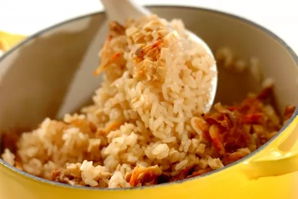 常備していると便利な乾物を使った炊き込みご飯は、具材にしっかり味が染み込んで、鍋底のおこげも楽しめそう。冷めてもおいしいので、たくさん作って翌日のお弁当やおにぎりにもおすすめです。