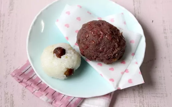 「モチモチ!あまぐりおこわ」を一口大に丸めてあんこをまぶせばぼたもちのできあがり。あんこの代わりにきな粉やすりごまなどをまぶしても楽しく食べられますよ。あまぐりの自然な甘さを味わえ、小さな子にも安心なおやつです。