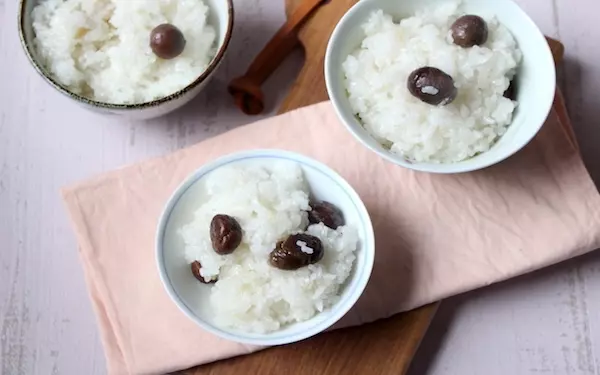 実は自宅で手軽に作れる炊きおこわ。今回は具にあまぐりを加えましたが、ゆで小豆と煮汁を加えればお赤飯に、人参、ごぼう、こんにゃく、油揚げ、干ししいたけなどの煮物を加えてしょうゆ味にすれば五目おこわに。モチモチで子どもにも食べやすい炊きおこわを、ぜひ身近に感じていただければと思います。
