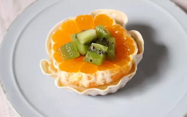 2、とろみがついたらクリームのできあがり! お好みで季節のフルーツをのせてお召し上がりください。