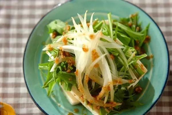 5分で完成! 自家製ゴマドレでいただく「豆腐と水菜のサラダ」