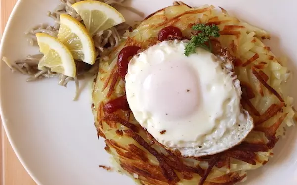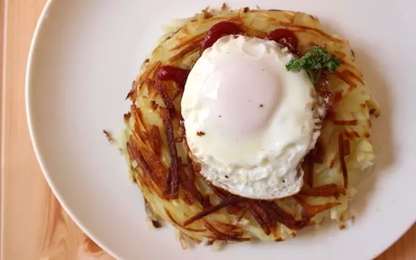 お好みでケチャップなどを添えて召し上がれ! じゃがいもは千切りしてから水にさらさずそのまま焼くのがポイントです。水にさらすとじゃがいも同士がくっつかなくなってしまいます。