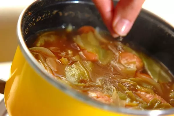 15分で春野菜の甘みを凝縮! 「春キャベツとウインナーのカレースープ」