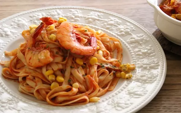 子どもの好きなえびとコーン入りで、パクパク、つるつる、あっという間になくなってしまいますよ。
