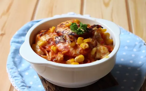 「きしめんトマトソース」を耐熱皿に入れ、チーズをのせてオーブンで焼けばトマトマカロニグラタンのできあがり! トマトとみそがより濃厚になって、食べ応えがありますよ。「きしめんトマトソース」の間にミートソースをはさめば、さらにボリュームアップ! 人気の一品になること、間違いなしです。