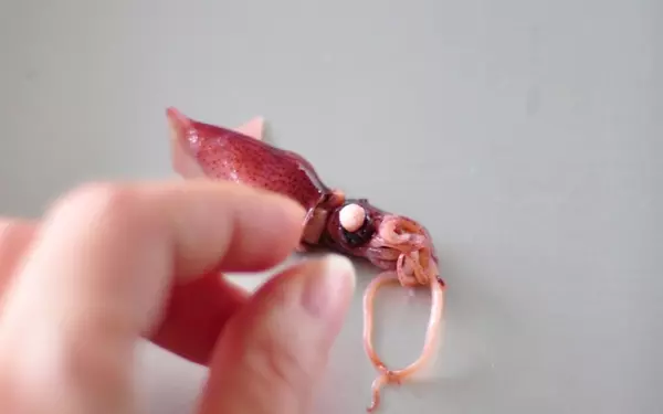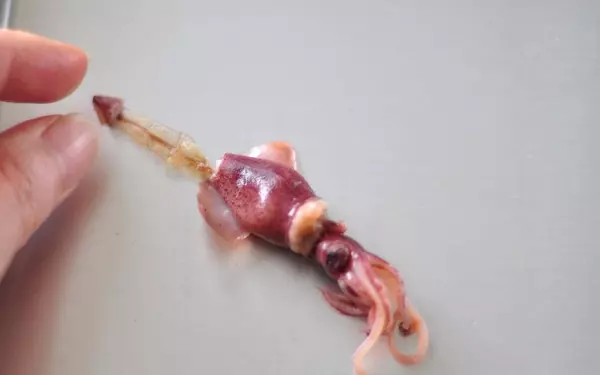 1、ほたるいかは目と口、軟骨をとる。