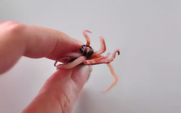 ふたつついている目は、親指の爪にひっかけて取ります。目があらかじめ取れているものもあります。
