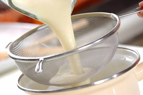 2、ミキサーにかけ、細かめの網を通す。コショウで味を調え、器によそい、クラッカーを砕いてのせる。