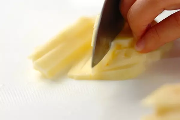 ・ジャガイモは皮をむき、幅5mmのせん切りにし、水に放つ。