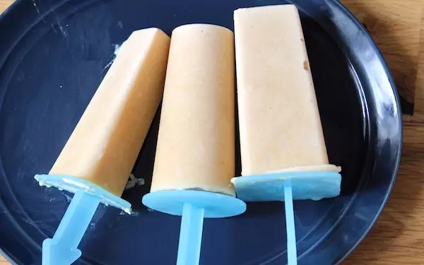 今回は、100円ショップなどでも購入できる棒アイスの型を使いましたが、丸いカップに入れたり、製氷機に入れたり、食品保存用袋に薄くのばして入れてもOK。形によって食感が異なるので、食べ比べてみるのも楽しいですよ。