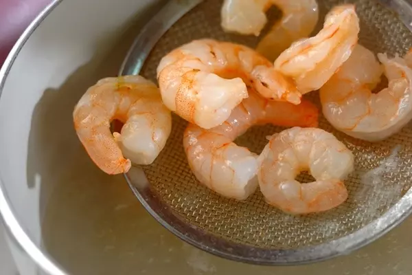 1、鍋に湯を沸かしてワカメを茶こしに入れ、サッと湯にくぐらせる。同じ鍋にオクラを入れて1分程度ゆで、取り出して水で冷やす。最後にむきエビを入れ、赤くなり、浮いてくるまでゆでる。水で冷やしてザルに上げ、水気をきる。