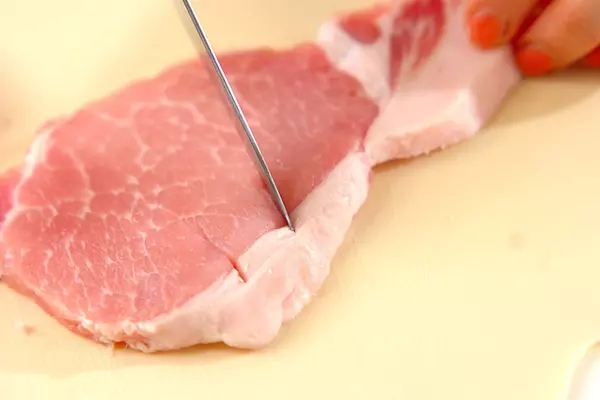 お肉のサイズにもよりますが、3~4センチ間隔で4~5か所切り込みを入れましょう。切り過ぎると、切り口から旨みが出てしまうので注意してくださいね!