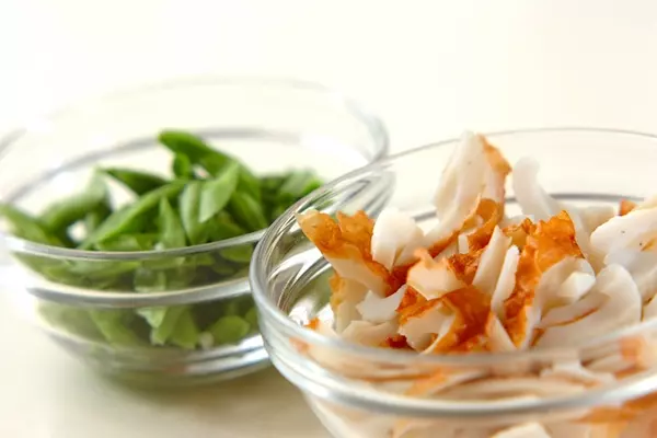 ・ちくわは縦半分に切り、さらに厚さ5mmの斜め薄切りにする。