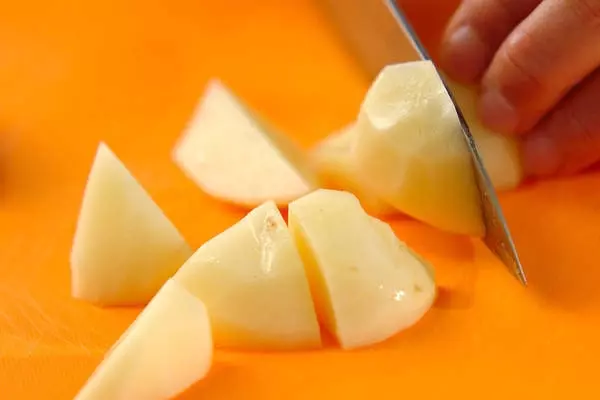 ・ジャガイモは皮をむき、小さめのひとくち大に切り、水に放つ。