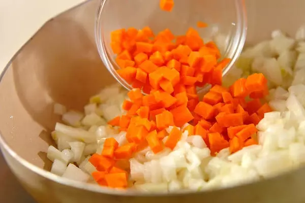 ・ニンジンは皮をむき、みじん切りにする。