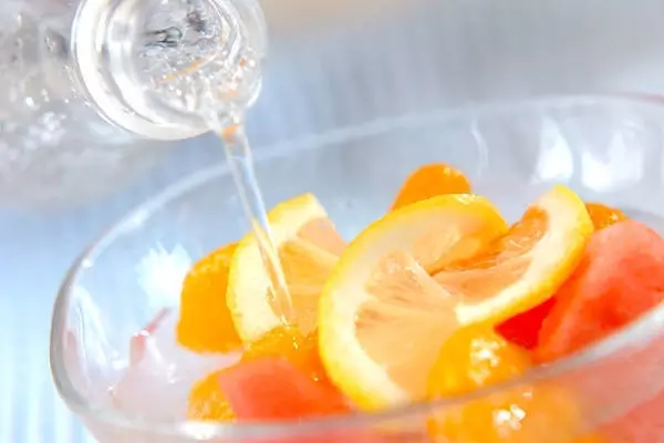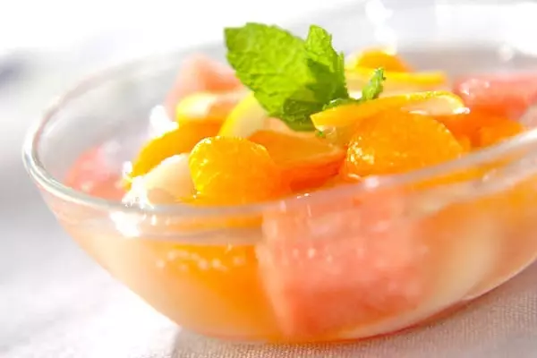 ・<シロップ>の材料を混ぜ合わせ、スイカ、ミカンを加えて冷蔵庫で冷やしておく。