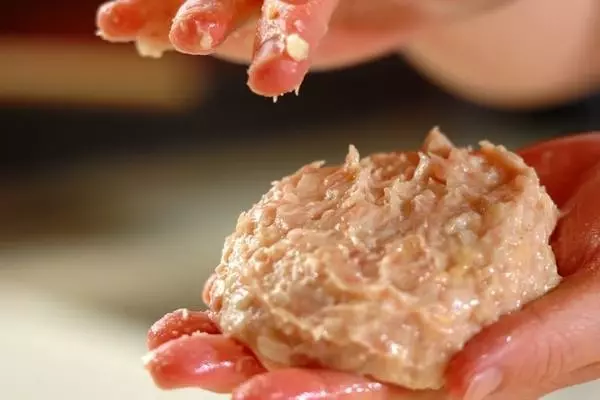 冷凍卵の白身は半解凍で混ぜると、ふっくら柔らかいつくねになります。