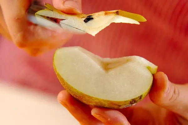 ・梨は芯を取って皮をむき、食べやすい大きさに切る。