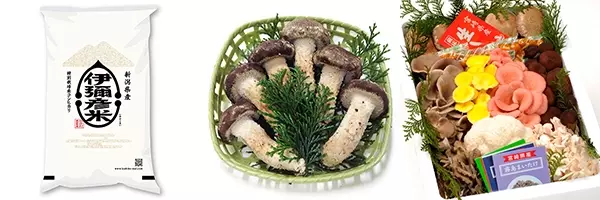 農薬・化学肥料を50%以上減らした「特別栽培コシヒカリ」/松茸によく似た珍しい「松きのこ」/椎茸、まいたけ、なめこのほかに色鮮やかなきのこも「きのこづくし」■松茸のみの松茸ご飯