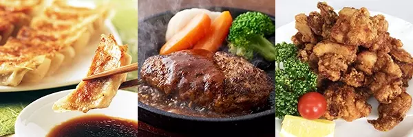 たまには、子どもが喜ぶメニューも! スーパーのお惣菜とはひと味違う、こだわりの餃子、ハンバーグ、からあげ、などの人気メニューが揃ってます。